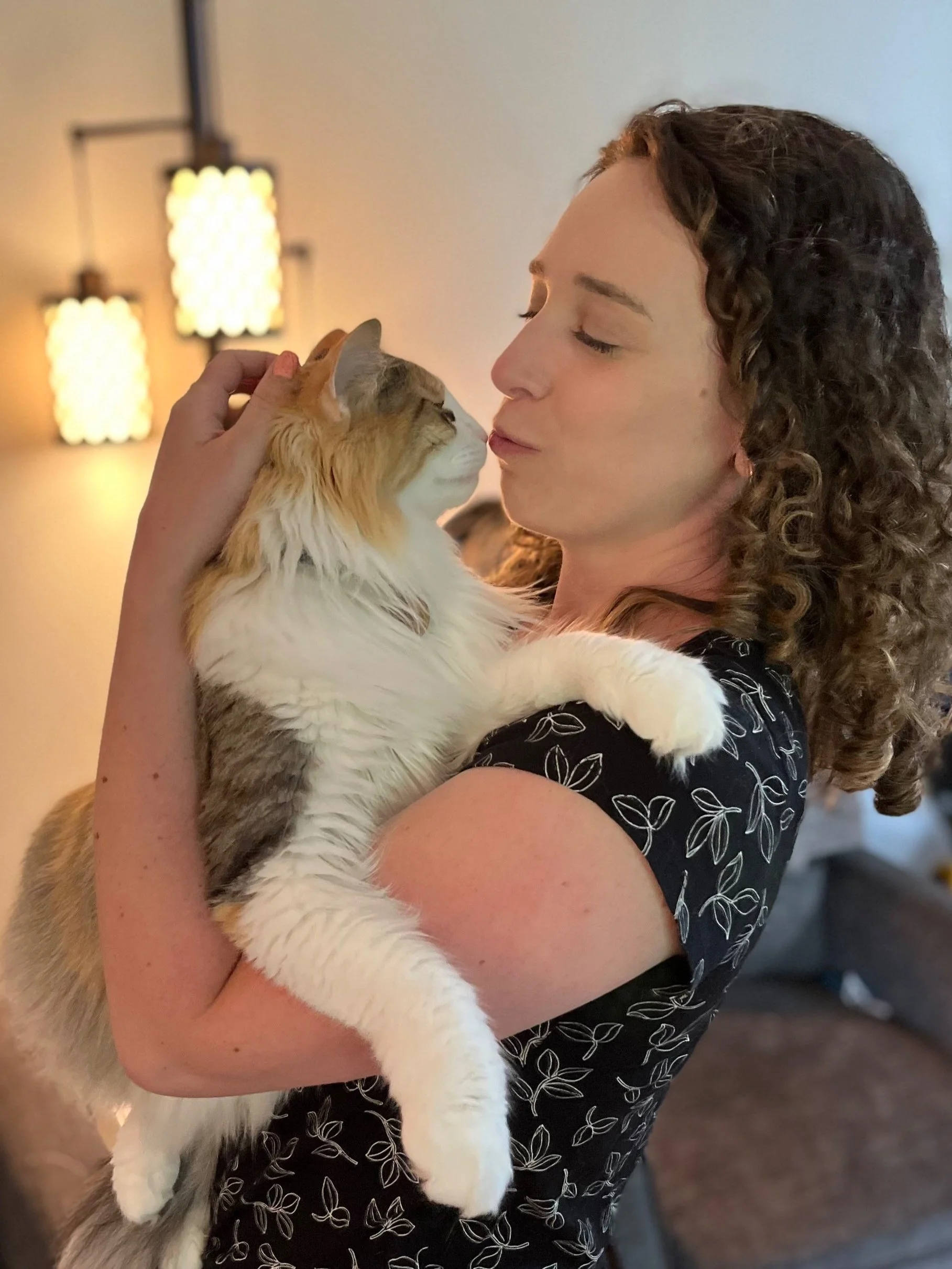 My name is Delanie and I’ve never met a cat I didn’t like. I experienced my first feline bond at age 12 with a cat who adopted our family (you read that right). Her companionship taught me how to communicate with cats, value their personalities, and cherish their love. When she crossed over the rainbow bridge in 2018, I knew she changed my life forever—my grief was love with nowhere to go, and the love was cat-shaped.